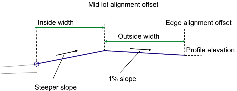 May be used to override the fixed Inside Width by tying the mid lot line to an offset alignment. The following object types can be used as targets for specifying this offset: alignments, polylines, feature lines, or survey figures.