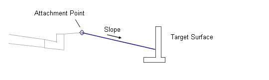 A link is extended to the left or right from the attachment point at the given slope until it intersects the target surface.