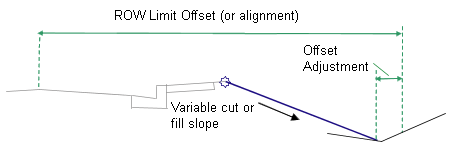 +/- value added to the ROW Limit Offset. A negative adjustment value moves the daylight point inside of the ROW limit; a positive value moves it outside the ROW limit. |