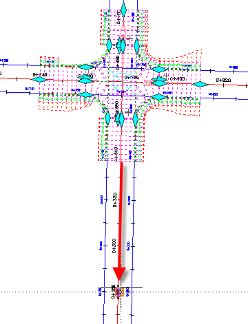 grip that is at the bottom of the intersection. Drag the grip down. Click to place the grip further to the south.