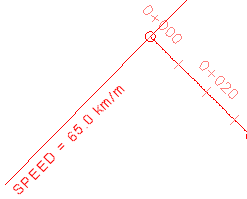 Examine the design speed label. You will use this label style as a basis to create a new label style that will display the design speed without the station label. The design speed labels will be placed at locations where the stations are already labeled.