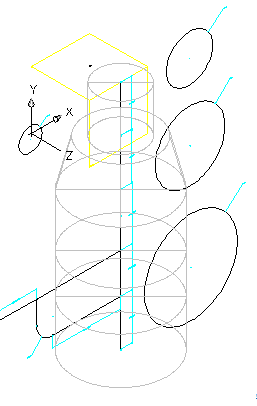 7. Finish the drop pipe assembly by adding paths for the upper segments. Start with the right upper segment. Switch to SE isometric view.