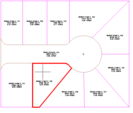 Further exploration: Use Steps 3 through 8 to move the lot lines that are between parcels 108, 109, and 110 to match the parcel layout of parcels 101, 102, and 103.