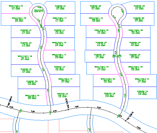 After the model regenerates, notice that the blue Standard lot lines have overwritten the pink ones for Single-Family lots.