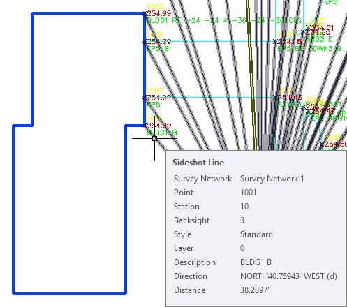 Survey Network 1 to display the collections of survey data, including control points, directions, and setups.