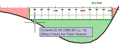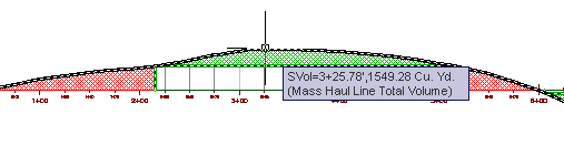 The cut volume above the balance line is entirely free haul. Notice that now there is a red, overhaul volume below the balance line. You will balance the fill volume in the following procedure.