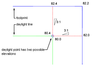 Elevation: Specifies that the grading projection lines will be extended from the footprint until they reach a specified elevation. Enter a positive or negative number in the