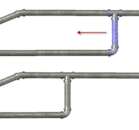 Move the parts to their new location. Parts remain connected and are stretched if needed to maintain the connections.