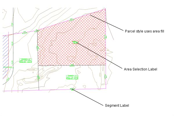 There are separate label styles for parcel areas and parcel segments.