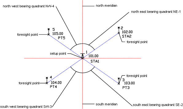 A point that is created by the Survey features of Autodesk Civil 3D, such as importing a field book or LandXML file containing survey data. A survey point can represent a Control Point, Non-control Point, Setup, or Sideshot. When a survey point is placed in the Autodesk Civil 3D drawing, it creates a special Autodesk Civil 3D COGO point that prevents its location and description from being modified from outside the Autodesk Civil 3D Survey features. For example, a survey point location may be a traverse station whose location is dependent on many observations from previous traverse stations, all originating from a known control point and direction. In the Autodesk Civil 3D drawing the Survey Point displays a different icon than the Autodesk Civil 3D COGO point to indicate its origin.