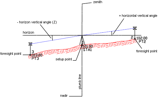Vertical angles and distances are converted automatically to horizontal angles and distances when you adjust a traverse loop, or perform Least Squares adjustment on observed data.