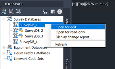 - In Toolspace, on the Survey tab, right-click the Survey Databases collection.