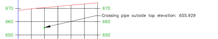 If the crossing pressure pipe is moved to a different station along the alignment, the labels will be updated with the new station and elevation information.