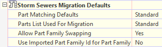 The Part Matching Defaults settings are found in the Feature Settings for Pipe Networks under Storm Sewers Migration Defaults.