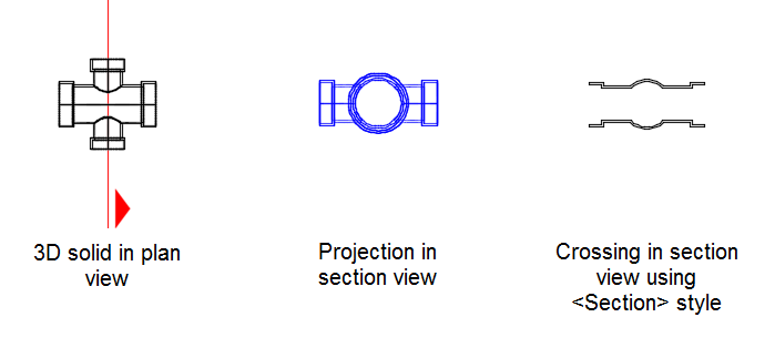 Crossing objects in section views use the following styles: