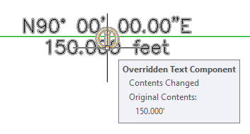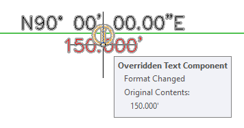Format Changed: Indicates that the format of the label has changed, but the contents have not changed. In the following illustration, the color of the distance label was changed to red.