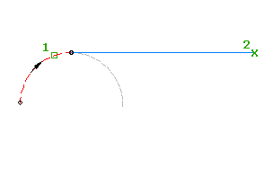 This type of entity always starts at the end of the entity it is attached to. The line is always tangent to the end of a fixed or floating curve. Unlike an entity where the location is defined by a pass-through point, this type of entity is not pinned to a location in the drawing. Therefore, the entity geometry moves with the entity to which it is attached.
