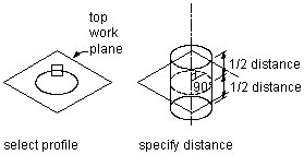 A plane extrusion sweeps a profile between the profile itself and a specified work plane. If the work plane is a reference work plane, the extrusion is updated when the work plane is moved.