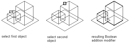 A Boolean add modifier combines two features to create a single feature. This modifier assumes a basic concept of addition: that geometry inside other geometry, when added together, is removed. This modifier is helpful when creating models of parts that are placed in your drawing exactly as they were created in the model.