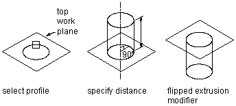 A blind extrusion sweeps a profile a specified distance along its normal, or perpendicular axis. You can flip the extrusion to sweep the profile in the opposite direction as the default normal.