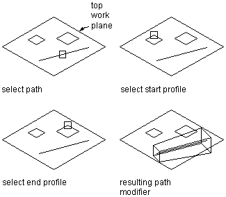 A path modifier sweeps a profile along path geometry. It creates a 3D feature based on the start and end profile of a piece of geometry, such as a line or an arc. The start and end profiles can be different.