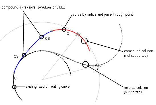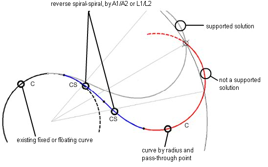To add a floating reverse curve with spirals (from curve, radius, through point) off a curve