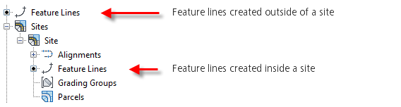 Feature lines can exist outside of a site or within a site.