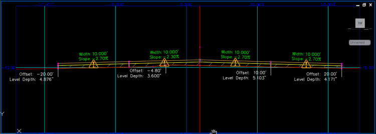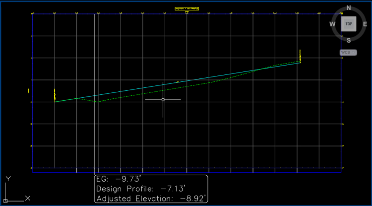 Elevation of the design profile for the selected station. The design profile elevation for a rehab corridor region is defined by the vertical baseline that was assigned to the rehab corridor in Corridor Properties during rehab corridor creation.