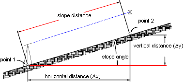The following illustration shows the Slope Distance command: