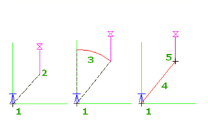 The last entered point is used, or you must specify a current point. From the start point (1), specify the quadrant (2), a bearing (3), and distance (4), to specify a point (5).