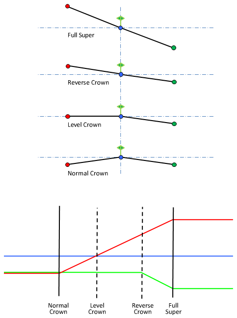 For an explanation of superelevation diagrams, see About Superelevation Axis of Rotation Pivot Methods.