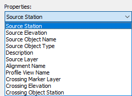 You can display the crossings and labels in the profile view using the elevation of the object, a surface, a profile, or you can manually specify an elevation. For alignments, the elevation option controls the elevation of the label as it appears in the profile view and it is specified manually.