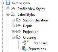 Crossing objects use profile view Crossing label styles.