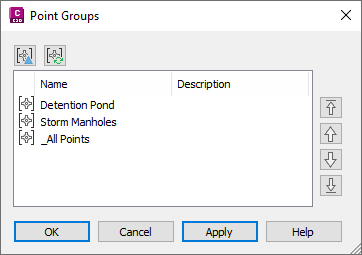 The point group display order for a drawing determines the order in which the point groups are drawn when a drawing is opened or graphics are regenerated. The first (highest) point group in the list is drawn last.