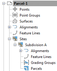 A drawing can include any number of sites, but each site has only one parcels collection. No unique parcel can belong to more than one site. You can see these relationships in the Sites collection in Toolspace, on the Prospector tab: