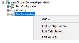 - In the Part Family browser window, right-click the Size Parameters node, and click Edit Values.