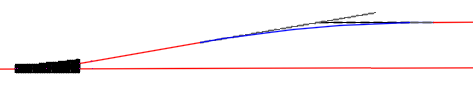 For example, when you follow the steps above, the turnout entities may appear in profile view as follows, where the diverted profile is on the left, and the profile of the alignment its merged with is on the right: