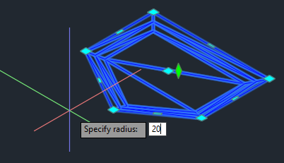 The curve radius is applied to the selected pond vertex.