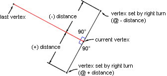 Define left and right turns, creating square sides on your figure. This is useful when drafting building footprints. At least two vertices must exist in the current figure for this command to work properly.