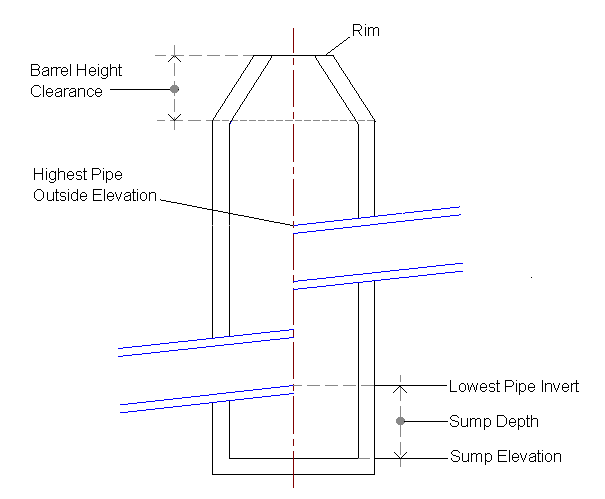 When you move the structure’s sump up, and the Control Sump By property is set to Elevation, the sump can only move up as far as the bottom of the vertical pipe clearance area.