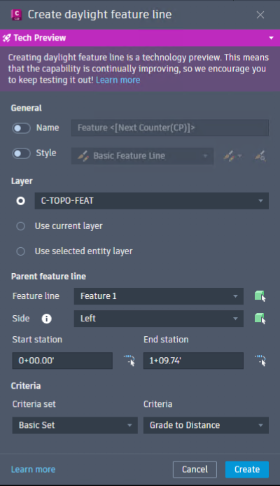 Daylight Feature Line for Civil 3D 2027 is a tech preview.