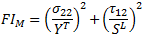 If the longitudinal normal stress (σ11) is less than the transverse compressive strength (YC), the material is considered to be in a moderate biaxial compressive state and the following criterion is used to evaluate matrix failure