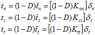 If we maintain the assumption that normal and shearing tractions do not exhibit coupling, the damaged constitutive relations can be expressed simply as