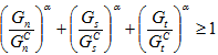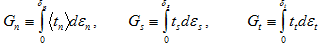 Given any instantaneous set of tractions (tn, ts, tt) and their instantaneous individual energy density components (Gn, Gs, Gt), we can use the above criterion and uniformly scale these tractions upwards to the level where the criterion is met. Let us denote this scaled traction as (