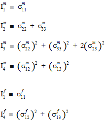 (j=1,4) are the transversely isotropic, constituent average stress invariants computed using the MCT decomposition.