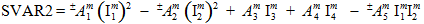 For the case of a progressive fatigue analysis with woven materials, SVAR11 through SVAR94 are used to store the individual components of the average stress and strain states in the various superconstituents and constituents (equivalent to SVAR8 through SVAR91 for static analyses).