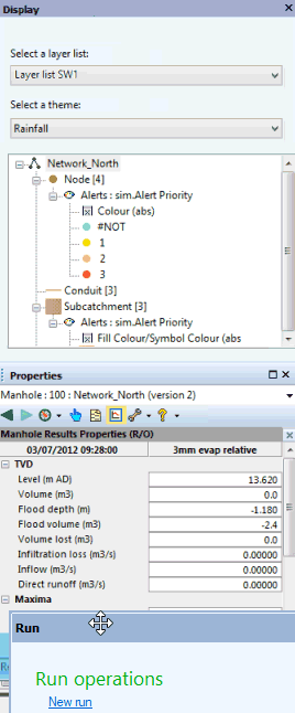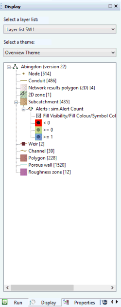 The default layout for a new installation (or if you have selected Reset toolbars and windows) is to have all vertically-oriented windows tabbed on the left (Run Window, Properties Window, Display Window) and all horizontally-oriented windows tabbed at the bottom (Summary Window, Server Sim Window, Sim Control Window, Sim Progress Window and Message Log Window).
