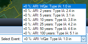 The various storm events simulated can be selected by using the Storm Selection list at the bottom of the screen or on the Results ribbon. Note if there are any Flood Risk or Flooded status for each Storm.