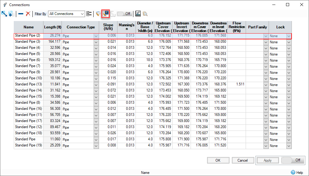 Now that the Arch Chamber SWC has been added and configured, Automatically Size the Pipe Network within the Connections.