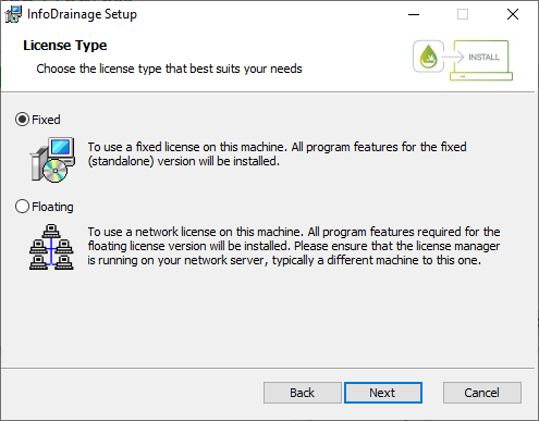 - On the License Type screen you will be able to select whether to make a Fixed or